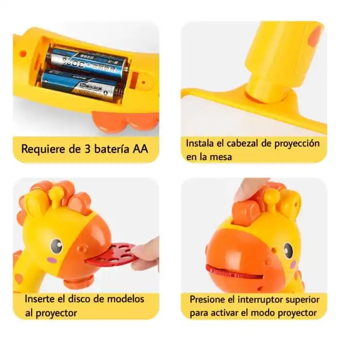 - Proyector con diseño de jirafa (funciona con 3 pilas AA — no incluidas)